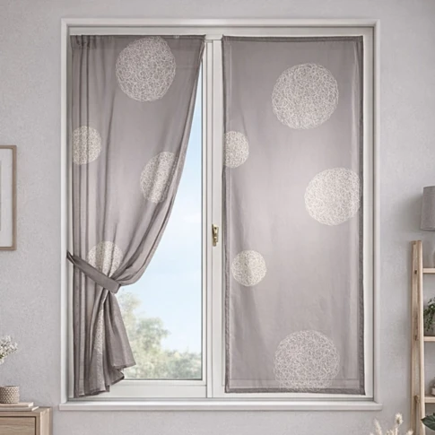 Petit Rideau en Pointe Etamine Brodée Ajourée Gris