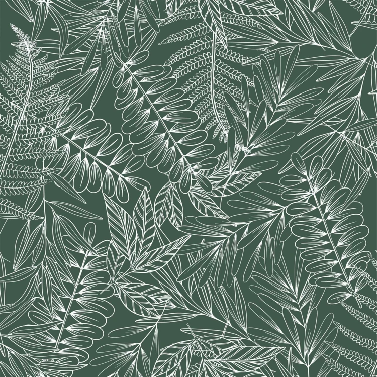 La housse de couette est réversible avec un recto imprimé de feuillages exotiques sur un fond écru et un verso à feuillages blancs sur un fond vert.