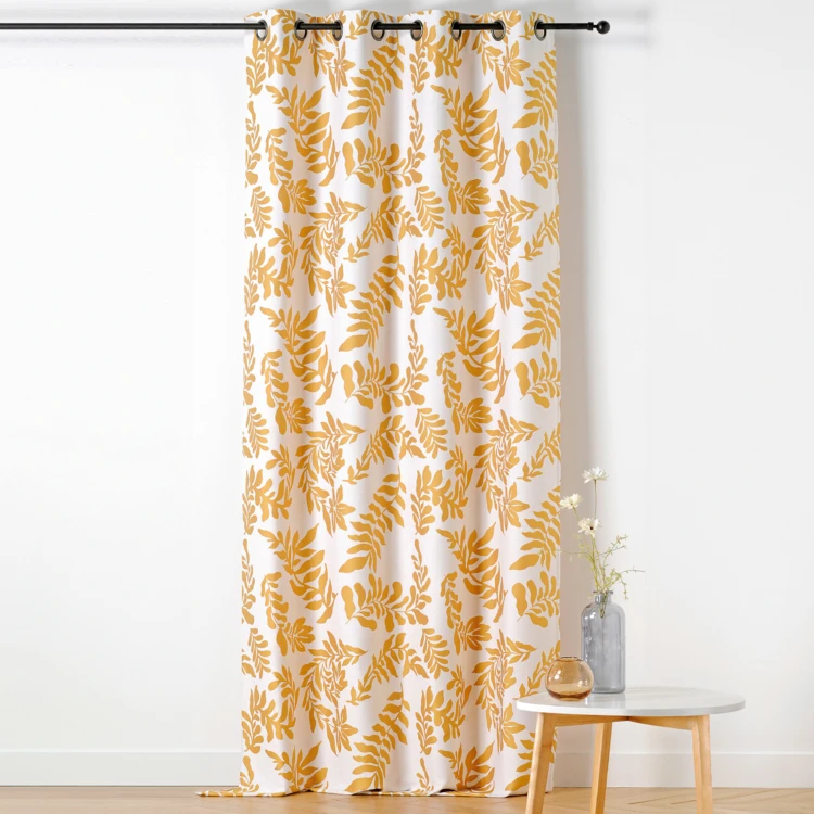 Disponible en coloris jaune, orange, bleu ou vert, ce motif vibrant de feuillages se détache avec élégance sur un fond blanc, créant une ambiance chaleureuse et lumineuse. Ses dimensions de 140 x 240 cm en font un rideau idéal pour habiller vos fenêtres avec style, tout en laissant entrer la lumière naturelle.