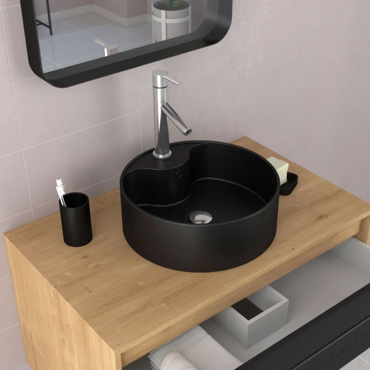 Créez un esprit très industriel et design en y ajoutant la vasque et le miroir noir mat.