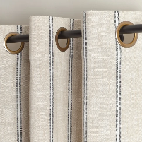 Rideau tamisant en coton flammé à rayures tissées avec œillets