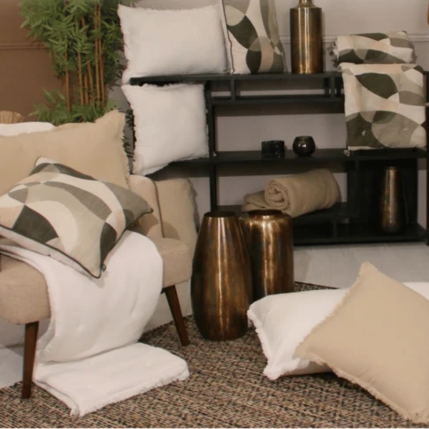 Coussin déhoussable en coton recyclé imprimé au recto/verso