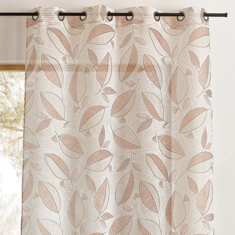 Paire de voilages passe-tringle en voile tissé motif feuillage
