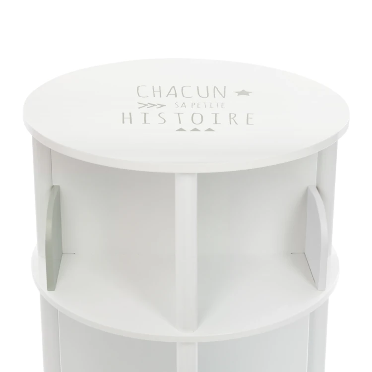 Offrez à votre enfant un espace de rangement fonctionnel et esthétique avec cette bibliothèque ronde sur roulettes.