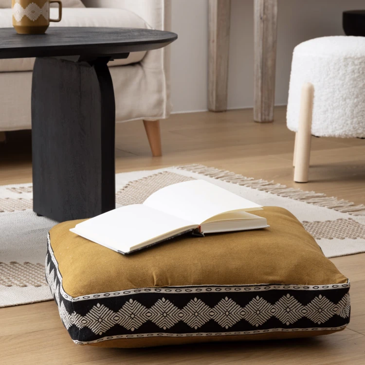 Ajoutez une touche d’élégance ethnique à votre intérieur avec le coussin de sol jacquard Inuit. Parfait comme siège d'appoint, ce coussin trouve naturellement sa place dans votre salon, que ce soit autour d'une table basse ou en complément de votre mobilier. Avec sa belle couleur jaune ocre et ses bords tissés en jacquard, il apporte une note chaleureuse et accueillante à votre décoration.