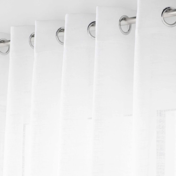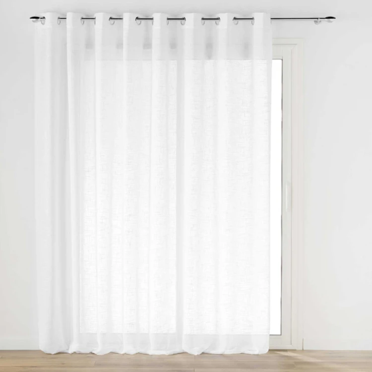 Grand Voilage à Oeillets Haltona Blanc Effet Lin Tissé