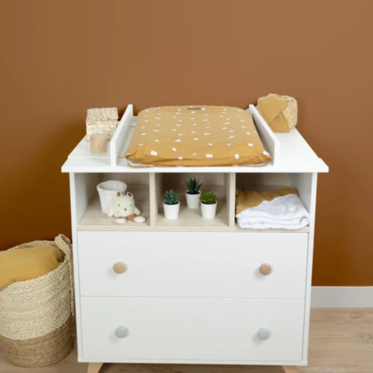 Parce que changer bébé sera l’un des gestes les plus fréquents de votre quotidien, optez pour un matelas à langer qui allie confort et esthétique ! Ce modèle, mesurant 50 x 75 cm, est conçu pour s'adapter à la majorité des tables à langer tout en apportant une touche chaleureuse à votre mobilier grâce à sa teinte caramel et ses motifs délicats.