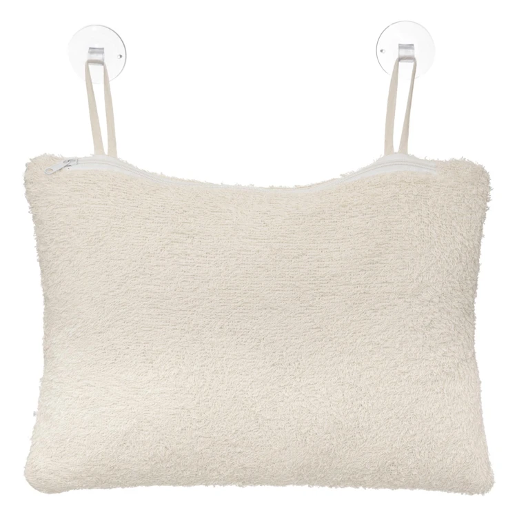 Celui-ci est doté d'une housse déhoussable et lavable en machine avec 2 ventouses afin de le maintenir sur la paroi de votre baignoire.
