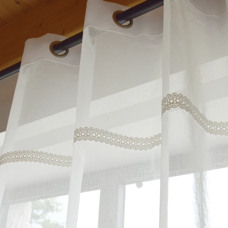 Transformez vos fenêtres en véritables éléments de décoration avec ce voilage à œillets au ruban macramé, alliant légèreté et élégance artisanale.