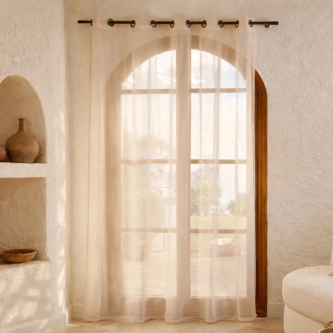 Ösengardine, Ruflette-Gardine, Gardine ohne Ösen, Gardine mit Pfoten, Gardine mit gerafftem Galon... Die Wahl der Befestigungsart hängt von Ihren Vorlieben und dem gewünschten Effekt ab. Ösen ermöglichen eine einfache Anbringung an einer Schiene, während Raffhalterungen für einen romantischen Touch sorgen. Laschen ermöglichen die Befestigung an einer Stange, und Modelle ohne Ösen können mit Klammern oder Haken befestigt werden.