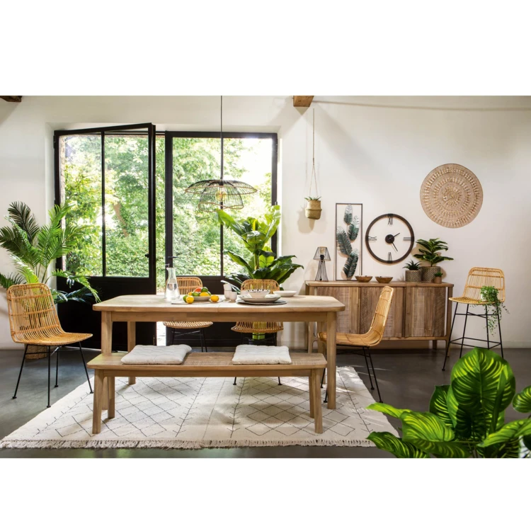 Zeitgenössisch und designorientiert, wird diese Hängelampe aus schwarzem Metall mit Raphia-Rand Ihrem Wohnraum Charakter verleihen.