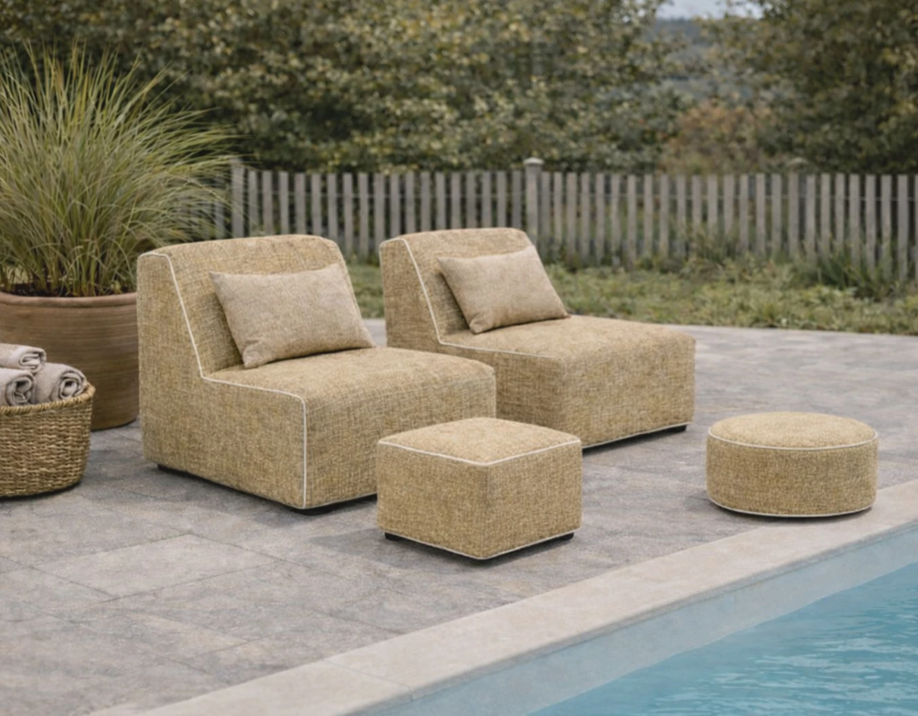 Inspiriert von mediterraner Eleganz, veredelt die Kollektion Formentera Ihre Terrasse, Ihren Garten und Ihren Poolbereich mit hochwertigen Outdoor-Textilien und Gartenmöbeln. Sie unterscheidet sich von den anderen Kollektionen der Marke Garden durch ihre klaren Linien, großzügigen Formen und ihre raffiniert natürliche Ausstrahlung. Formentera definiert den Outdoor-Bereich neu dank einer flexiblen Modularität: Der aufblasbare Sessel verfügt über ein Reißverschlusssystem, mit dem er mit anderen identischen Sitzelementen oder aufblasbaren Armlehnen kombiniert werden kann, um sich in ein maßgeschneidertes Sofa zu verwandeln. Zur Kollektion gehören außerdem ein quadratischer Pouf, ein passender runder Pouf, quadratische und rechteckige Kissenbezüge, ein Outdoor-Teppich sowie eine XXL-Außenmatratze im Stil einer doppelseitigen Sonnenliege. Diese Kollektion vereint schicke Ästhetik und höchste Praktikabilität. Dank abnehmbarer Bezüge eignet sie sich sowohl für den Innen- als auch für den Außenbereich, da ihr Polypropylen-Gewebe wasserdicht, schimmelresistent und schnelltrocknend ist. Formentera: eine kompakte, schnell aufzubauende Kollektion aufblasbarer Möbel, die entwickelt wurde, um Ihren Raum optimal zu nutzen.