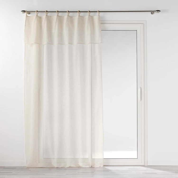 Dieses Voile mit Volant und Holzösen ist das ideale Element, um Ihrem Wohnzimmer, Schlafzimmer oder jedem anderen Raum Ihres Hauses Weichheit und Licht zu verleihen.