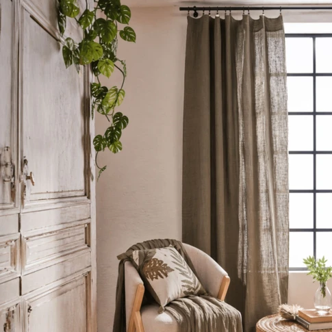 Der Tartan mit seinen Vintage-Karomustern, die an den Stil der schottischen Chets erinnern, ist heute ein zeitloses Must-have. Geeignet als dicker Vorhang aus Wollmischgewebe ist es ein flauschiger Flanell, der sich weich anfühlt. Er verfügt über Gewehrlauf-Ösen, die eine einfache und schnelle Anbringung an einer Standardstange ermöglichen.