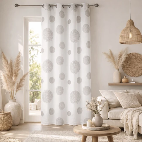 Visillo en estameña bordado con circulos mezclados