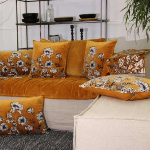 Cojín cuadrado efecto terciopelo con diseño tropical en relieve