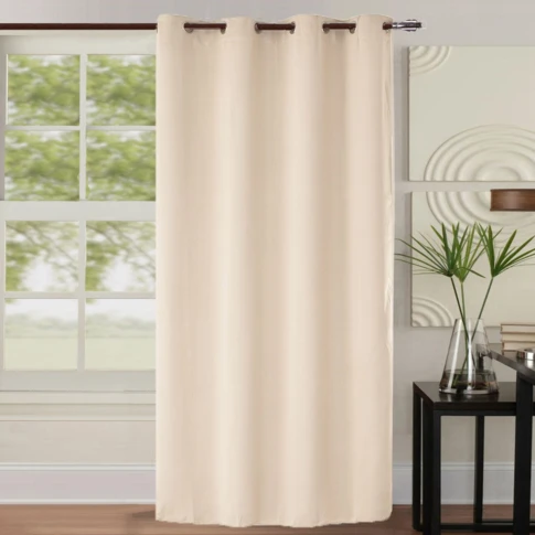 Cortina separadora de ambientes con paso de varilla y trenzado fruncido