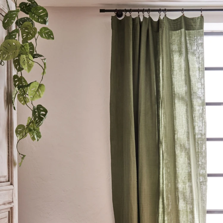 Disponible en una gama de colores atemporales, como blanco, caqui, azul marino, natural y taupe, esta cortina se adaptará perfectamente a todos los estilos de decoración interior, aportando una pizca de sobriedad y refinamiento a tu espacio.
