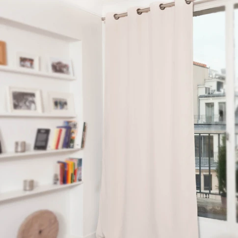 Cortina separadora de ambientes con paso de varilla y trenzado fruncido