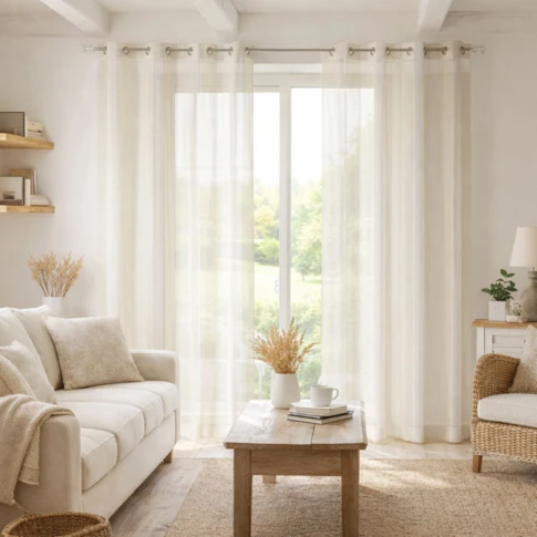 Cortina separadora de ambientes con paso de varilla y trenzado fruncido