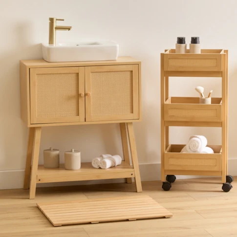Mueble zapatero de 3 abatibles con frentes de rejilla trenzada