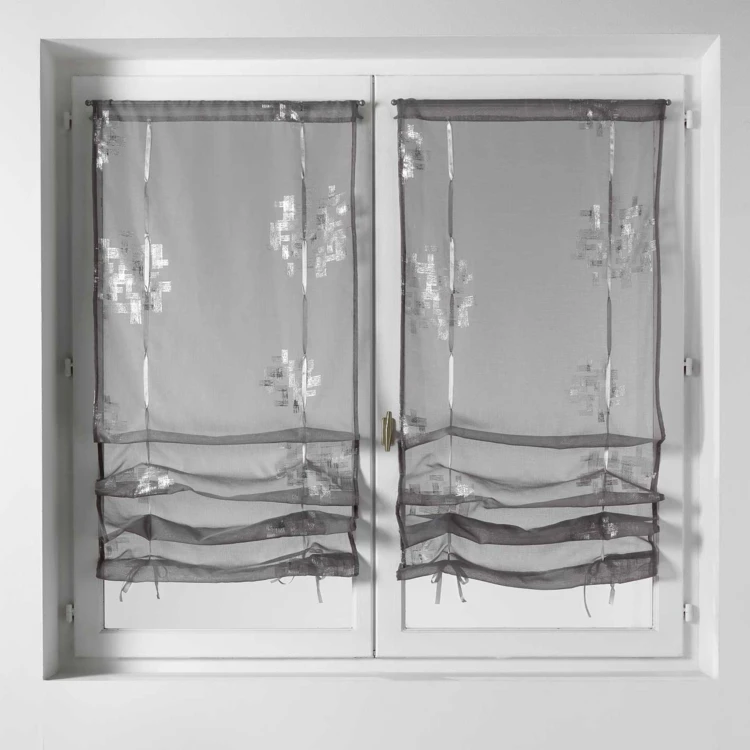 Este estor visillo vestirá tu interior con mucha elegancia y diseño. Se vende por pares, gracias a las dos cuerdas para modular la altura, podrás ajustar la entrada de luz como te apetezca. Dejarán penetrar la luminosidad exterior a la vez que matizan ligeramente. En tono gris, este estor visillo está disponible en dos tamaños.