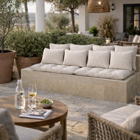 Pensado para responder a las limitaciones de un entorno exterior, este tejido de polipropileno es apreciado por su estabilidad y facilidad de mantenimiento.