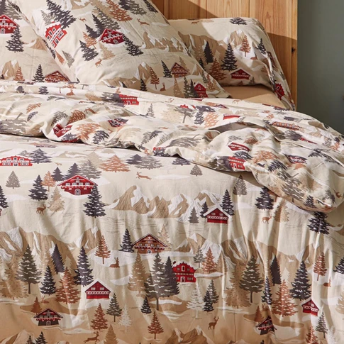 Parure de lit 2 pièces flanelle de coton à montagne housse + taie