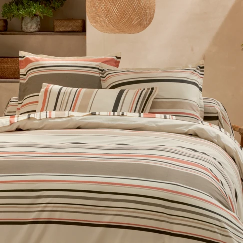 Parure de lit 2 pièces coton rayures bayadère housse + taie