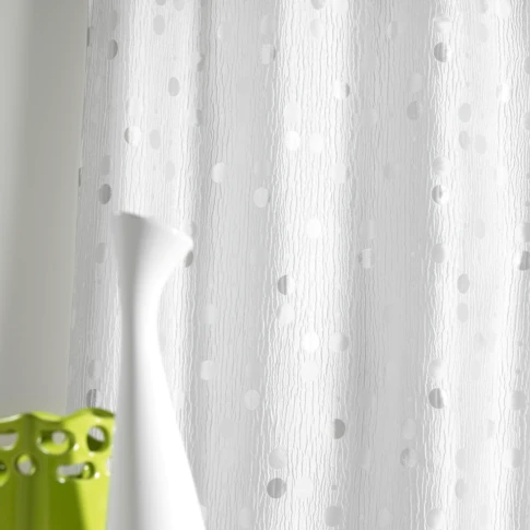 Rideau à œillets avec haut à carreaux et pompons en polycoton