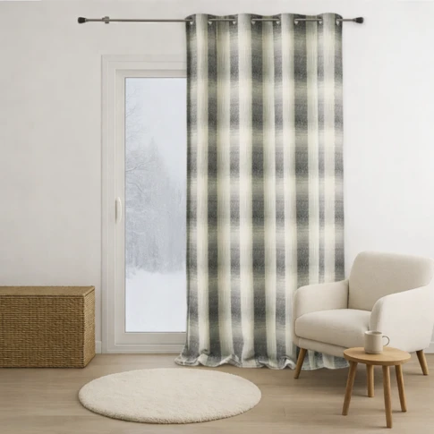 Rideau en jacquard à rayures verticales aux imprimés graphiques
