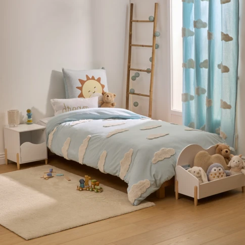Parure de lit enfant 2 pièces coton tufté nuages housse + taie