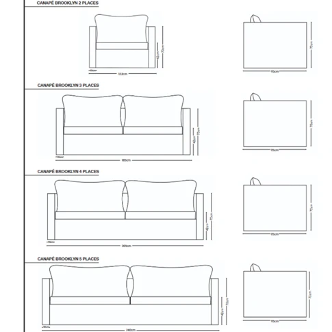 133 x 95 x 92 cm, 185 x 95 x 92 cm, 205 x 95 x 92 cm, 240 x 95 x 92 cm