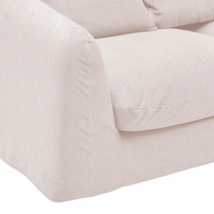 Canapé disponible en ivoire, en gris et en jaune ocre. Il mesure 216 cm de longueur, 101 cm de profondeur et 84 cm de hauteur ce qui correspond à 3 places.