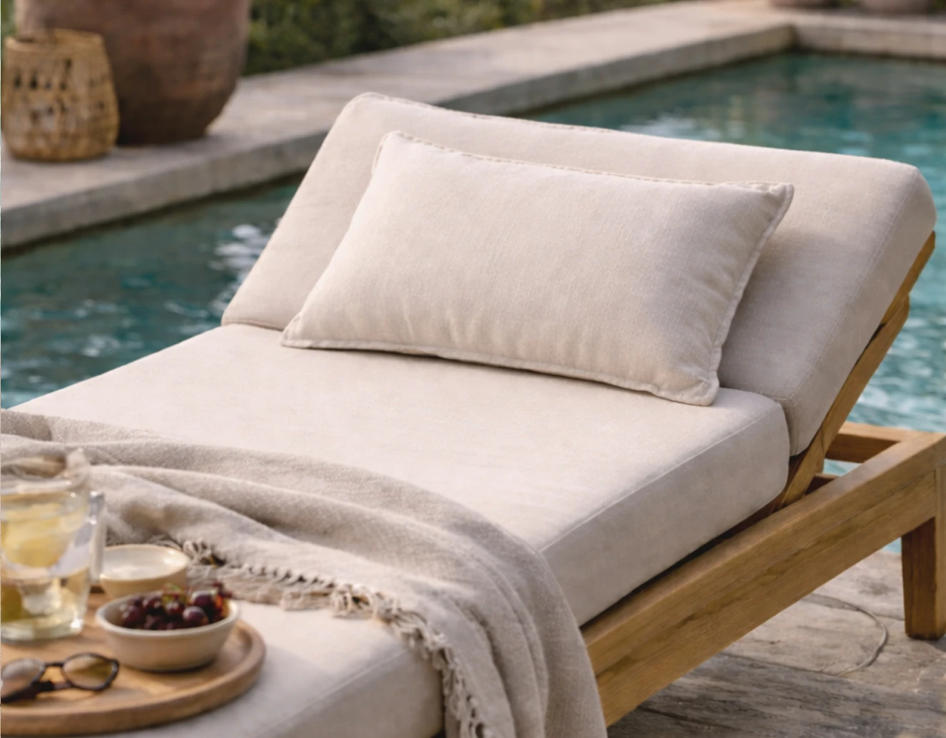 Sa toile outdoor en oléfine (polypropylène), déperlante et anti-UV, de couleur naturelle offre une résistance exceptionnelle face au soleil, à l’humidité et aux variations de température. C’est le choix idéal pour apporter une touche de raffinement et de moelleux à un banc de jardin de 60 x 120 cm, une terrasse ou un coin détente au bord de la piscine.