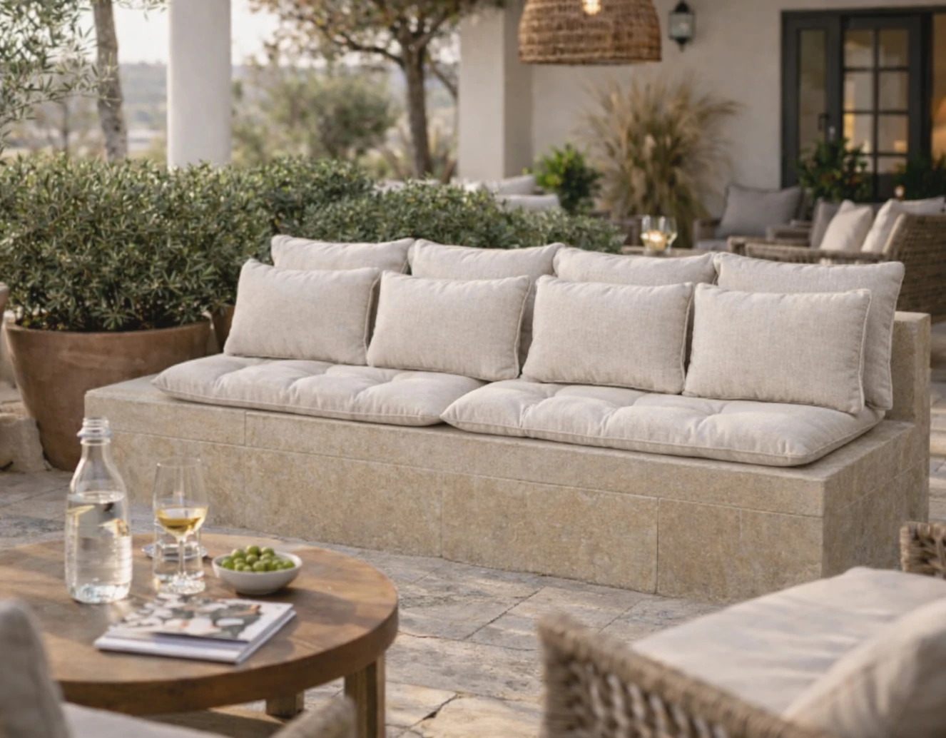 Le coussin d'extérieur Ferret allie résistance, confort et esthétique. Confectionné en toile Oléfine outdoor 100 % polypropylène, son tissage sophistiqué d’aspect toile naturelle apporte une touche chic et authentique, tout en garantissant une excellente tenue face au soleil, à l’humidité et aux variations de température.