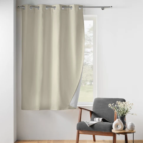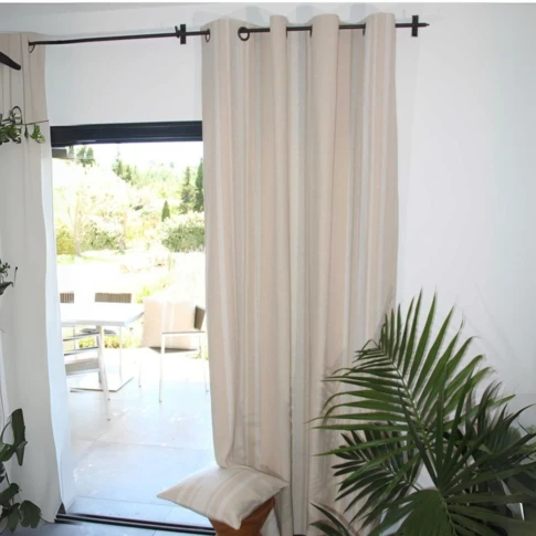 Rideau à Oeillets Papaya Palmiers à pompons et Top Métallisé