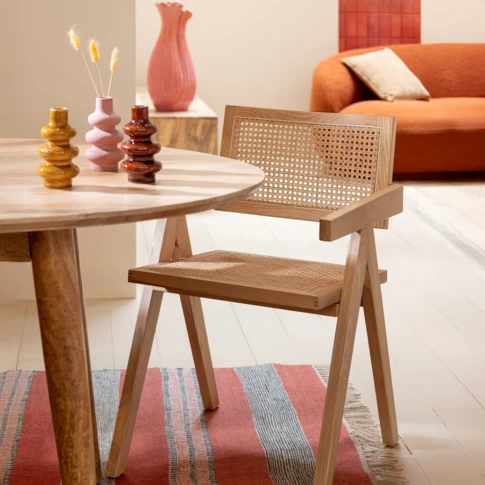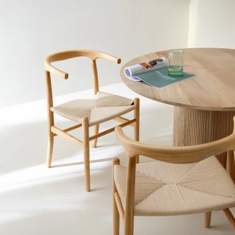 Tabouret en bois de teck et jonc de mer bicolore tressé