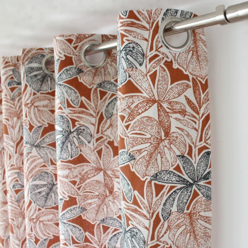 Paire de petits vitrages brodés feuillage