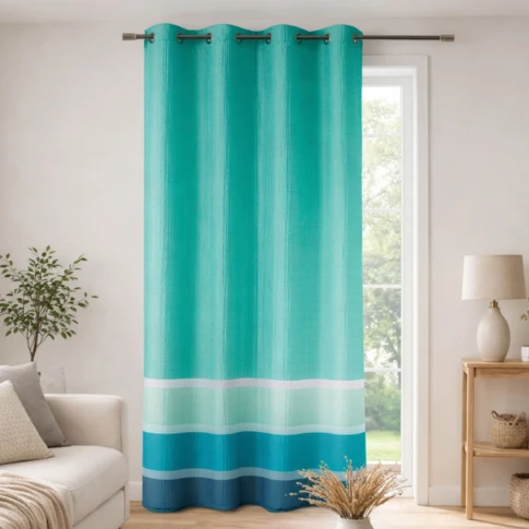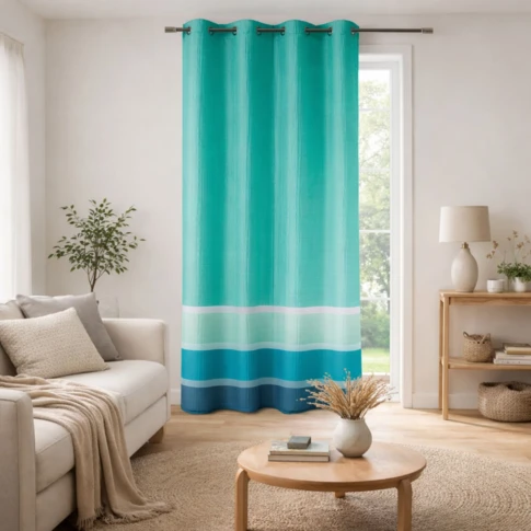 Rideau en jacquard à rayures verticales aux imprimés graphiques