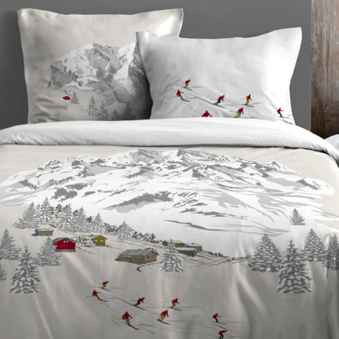Parure de lit 3 pièces design montagne en coton