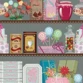 Univers gourmand et sucré avec ce tissu imprimé d'étagères de confiseries.