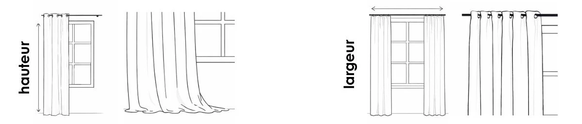 Conseil : privilégiez un ratio de x1,8 à x2 pour les rideaux occultants et thermiques afin d’assurer un bon recouvrement, et de x2 à x2,5 pour les voilages afin d’obtenir un rendu plus élégant.