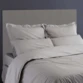 Cette tête de lit est recouverte d'un jacquard d'ameublement armuré qui lui donne un aspect de faux uni natté.