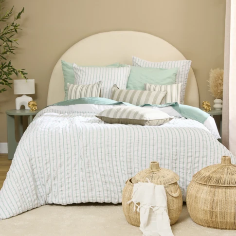 Parure de lit réversible texturée 3 pièces à rayures housse + taies