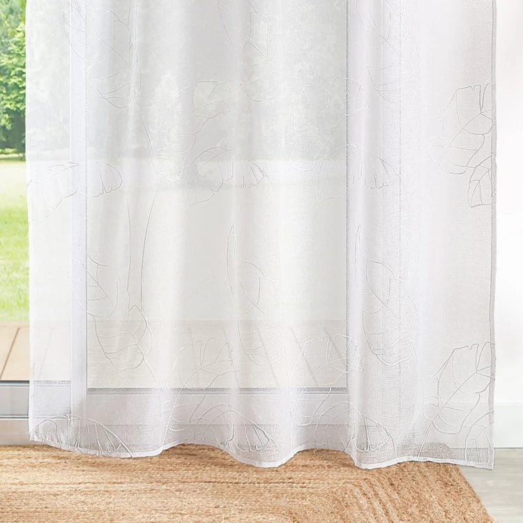 Apportez une ambiance douce et apaisante à votre intérieur avec ce voilage en étamine brodée orné d’un élégant motif de feuilles. Sa transparence légère laisse passer la lumière tout en préservant votre intimité, créant ainsi une atmosphère lumineuse et chaleureuse.